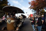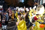 In Bend, hundreds lined the sidewalks and cheered as cars drove by honking their horns. A Cycle Pub full of patrons passed through the crowds and joined in with the cheers. Few, if any, counterprotesters were at the demonstration. About 300 people also protested in nearby Prineville, including two dressed as frogs and one dressed as a kitten.