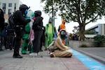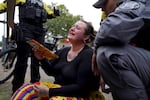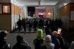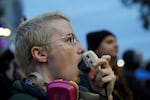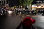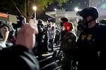 By 10 p.m., the rain was heavy and the crowd of protesters had dwindled to a few dozen people.
