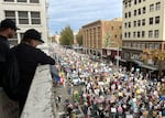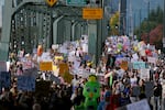 Soon, tens of thousands of people were marching through downtown and on the waterfront, forcing the closure of the Morrison and Hawthorne bridges.