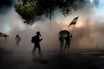Several minutes after the officers ceased deploying the munitions, the crowd began dancing again in the street as the cloud of smoke dissipated.