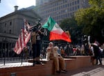 By noon on Saturday, thousands of people had gathered in the city’s Pioneer Courthouse Square and many were chanting, praying and singing “America the Beautiful” before their march to the city’s waterfront, where the state’s largest rally took place.