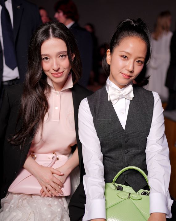 Jisoo, a member of Blackpink, was one of the most camera savvy of the attendees, getting shots with a bevy of fabulous girls at the show. Here, she’s with Oscar winner for Anora Mikey Madison, who we must imagine is sneaking in one of her many dogs inside per purse.