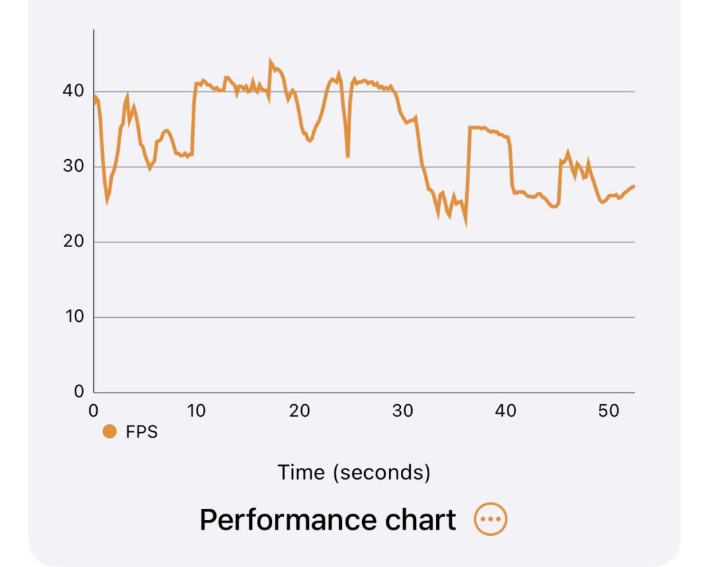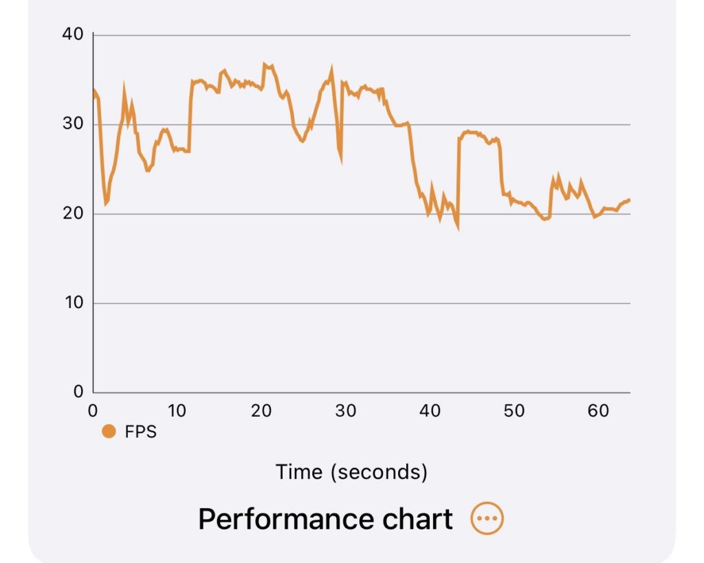 The iPhone 15 Pro’s 3DMark Wildlife Extreme Unlimited chart.