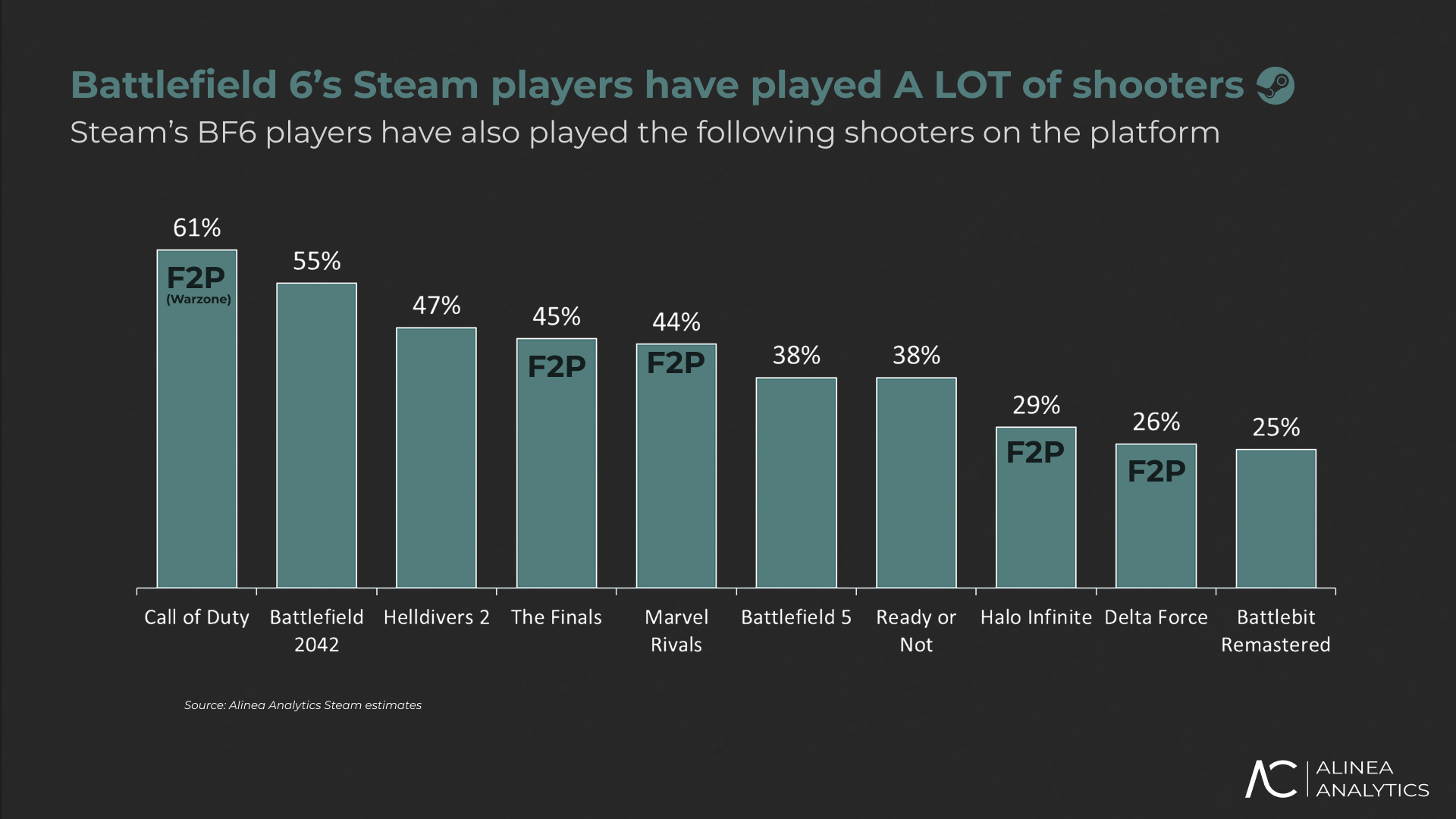 Battlefield 6 players on Steam – its lead platform – are clearly into all kinds of shooters: hero shooters, free-to-play ones, third-person ones, extraction shooters, co-op ones, old, newer – the list goes on.