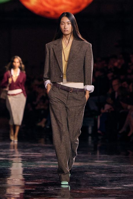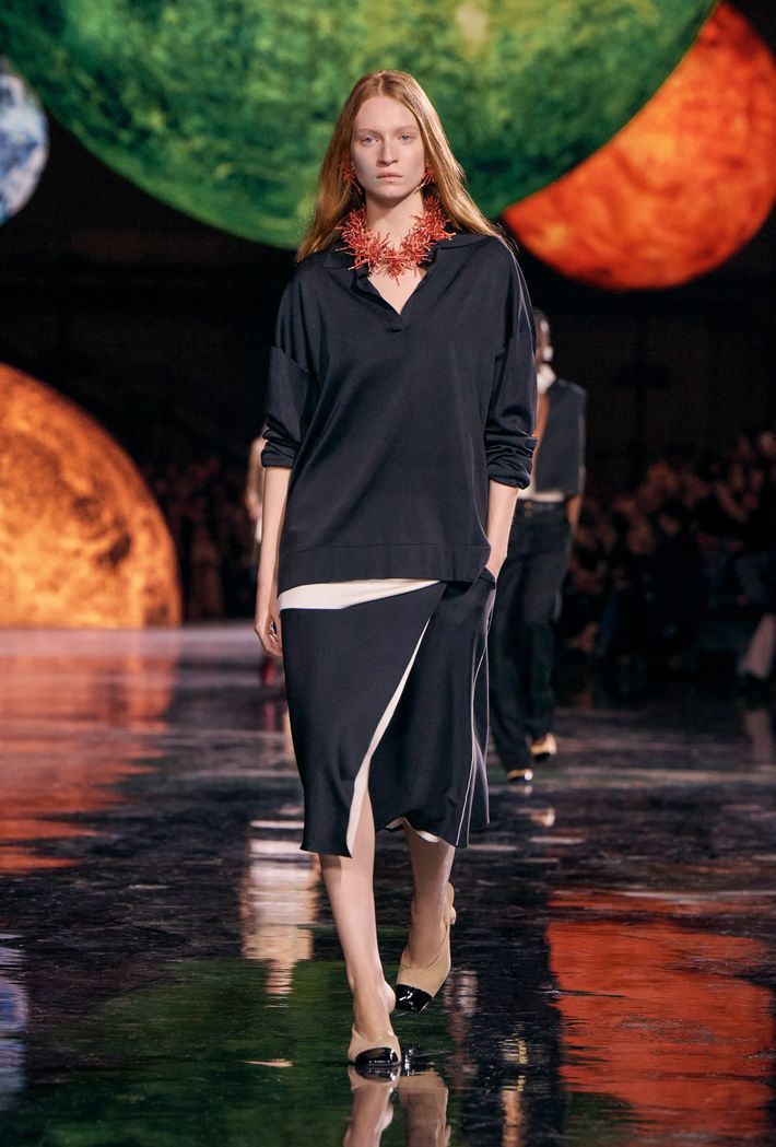 In many, many ways — all of them as clear as glass — Blazy has made Chanel a brand of the 21st century and, in the process, has left behind all its rivals with the exception of Hermès. In designing clothes that are not about youth or cool or some topical discussion primed for social media, he has significantly widened the frame of fashion. Many brands this season, in hindsight, took a decidedly small-picture view, often focused on a conceptual idea that tended to be lost in translation or tried boringly hard to be relevant. Blazy’s models strode across the celestial floor in a variety of suits with easy, side-split skirts set just below the waist and shifts that combined the top and skirt with a matching jacket that were languorous on the body, visibly light in weight, and so unlike the boxy Chanel fit of recent years as to be almost unidentifiable — something new in fashion.