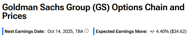 Indeed, it currently says that options traders are expecting about a 4.4% move in either direction in GS stock in reaction to Q3 2025 results.