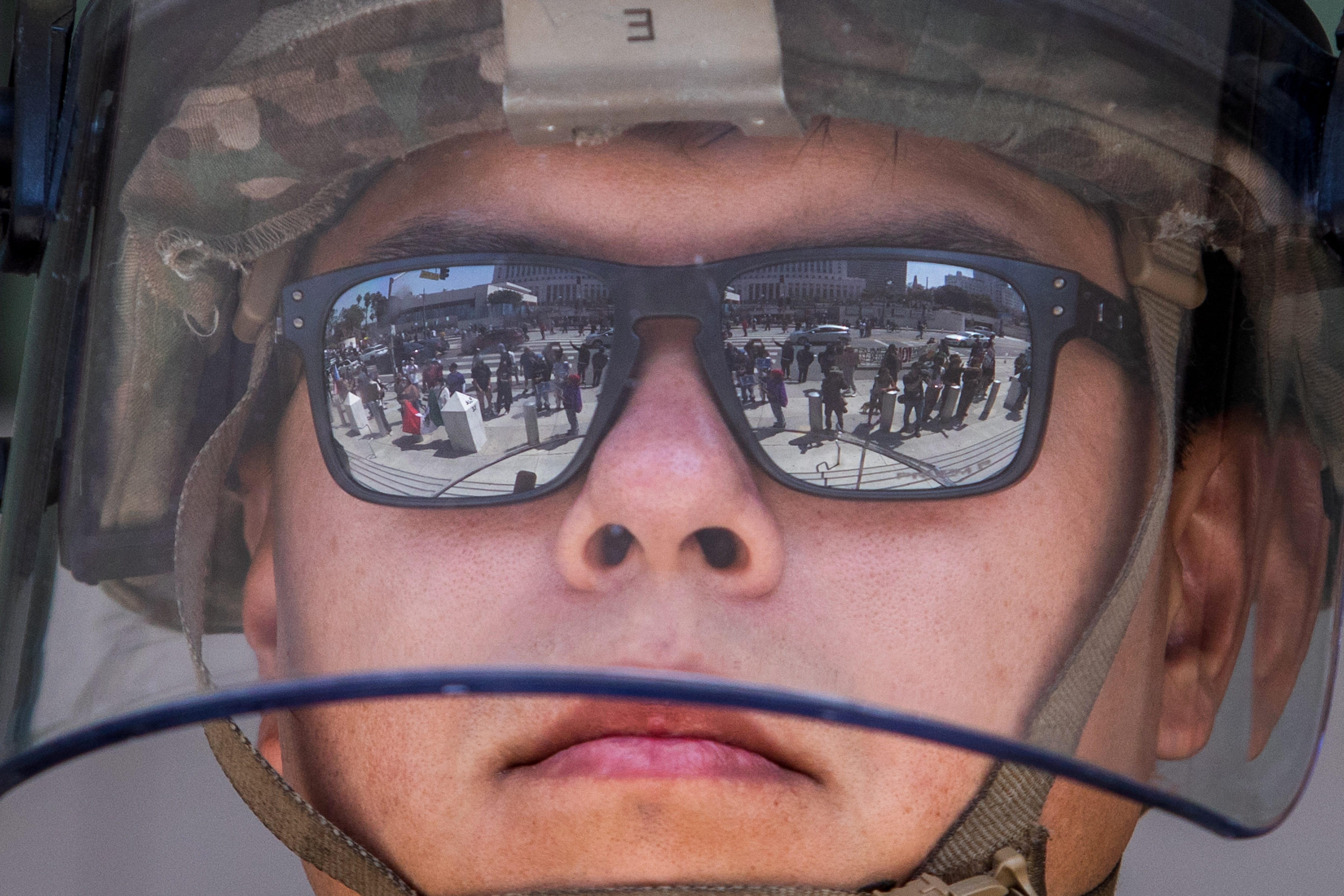 The evidence at trial established that Defendants systematically used armed soldiers (whose identity was often obscured by protective armor) and military vehicles to set up protective perimeters and traffic blockades, engage in crowd control, and otherwise demonstrate a military presence in and around Los Angeles.