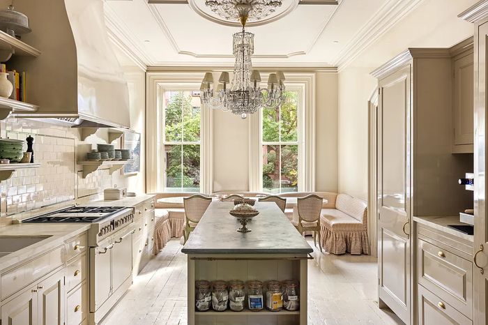 The house is now for sale for $7.995 million — more than double the $3.5 million that the two paid in 2021 when they were just newlyweds who had met on Raya and eloped to Vegas. That price may take into account the neighborhood’s hot streak or the cash they poured in to the Billy Cotton renovation she name-checked. Before their arrival, the place had been with one owner for decades and had bad wall-to-wall carpet, cheap beige tiles in the kitchen, and old cabinets, according to the 2020 listing. Cue Cotton. The designer put in custom cabinetry, new moldings, and lots of fussy wallpaper from Zuber. There’s print, print, and more print. A bathroom features custom faucets modeled to look like little swans. Harbour called the designer “budget un-conscious” in the AD tour.