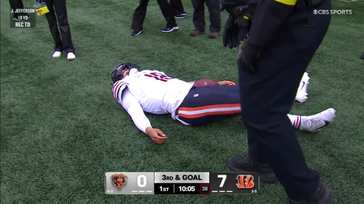 But the Bears kicked out of Flacco Magic. Williams found Loveland upfield for a 58-yard touchdown with 17 seconds left that was aided by nobody on the Bengals’ defense being able to tackle, and gave the Bears the improbable win after almost allowing an embarrassing comeback.