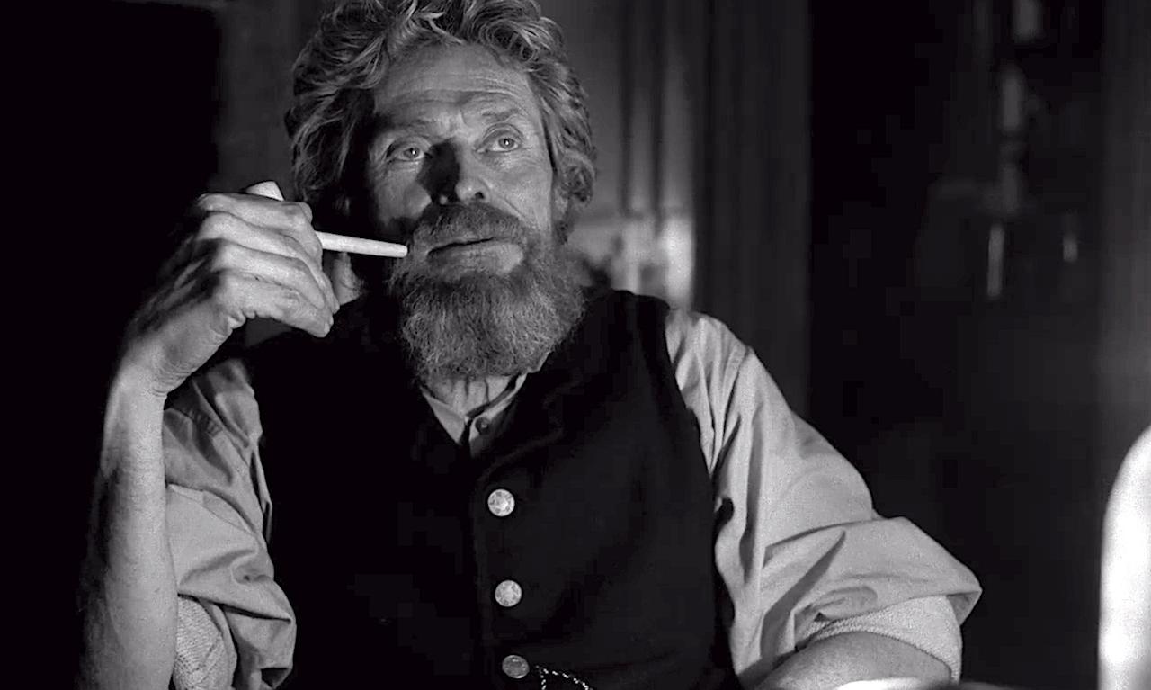 To my friend Tom, I’m fond of yer lobster. I’m fond of just about everything Dafoe is cookin’ in Robert Eggers’s black-and-white stunner The Lighthouse. Dafoe’s Thomas Wake is a goddamned drunken, horse-shitting genius. He is a weather-beaten sailor with 13 Christmases at sea, now damn well wedded to the light. He’s a wickie, and a wickie he is—charcoaled black and gray, an old, grizzled crustacean limping twixt storm and stone. One moment he’s a dancing buffoon; the next, he’s cursing Neptune in a rolling, tidal rage: “Hark, Triton, hark! Bellow, bid our father the sea king, rise from the depths, full foul in his fury, black waves teeming with salt foam, to smother this young mouth with pungent slime.”