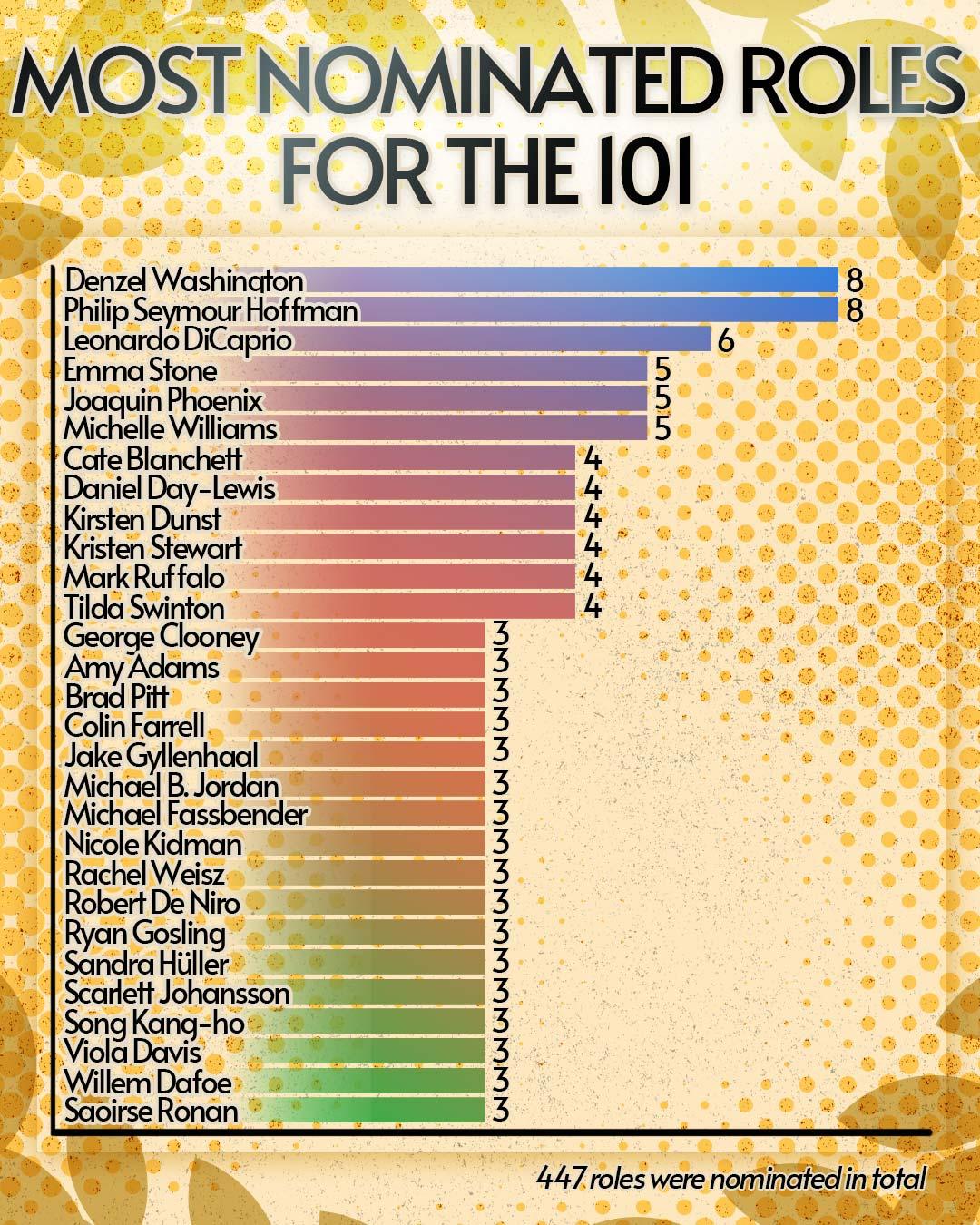 - It allowed us to get some more interesting entries onto the list. Rather than loading it up with Cate Blanchett or Denzel Washington roles, we were able to get some smaller performances on here.