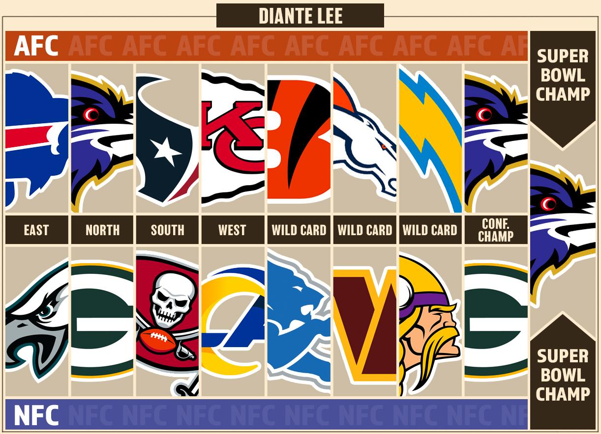 Diante Lee: For the third season in a row, Baltimore has every piece it needs to win a championship. Jackson has been on a steady ascent over the past couple of seasons, and there’s too much continuity here to expect this offense to be anything other than elite. If the run game holds (and I’ll never doubt the ageless Derrick Henry) and the defense builds on its hot streak from the end of the regular season, I have no doubt that this can be the NFL’s best team and the eventual champion. Baltimore will secure its third title in as many decades and cement Jackson as one of the greatest to ever play the game.
