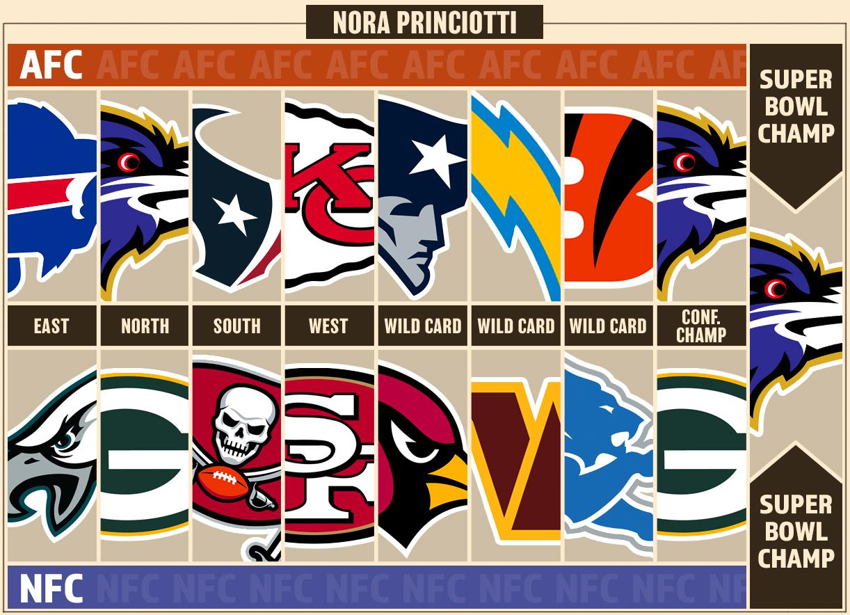 Nora Princiotti: It’s time for some fresh faces in February. In the NFC, I like Green Bay’s coaching stability, Jordan Love’s development, and, of course, the defense with Micah Parsons in the fold. That’s more than enough for a great year and a run past other conference contenders like the Eagles and the Lions. It’s not quite enough, however, to get past Baltimore. I’m a firm believer that most of the Ravens’ struggles in the playoffs have come down to noise and small sample sizes. They have the most complete roster in the NFL and a quarterback playing at a tippy-top level. It’s time to get it done.