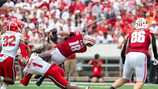 Wisconsin plays Michigan next after being blown out by Alabama and Maryland the last two games. The situation is getting incredibly ugly for Luke Fickell as he fights to keep his job. (Photo by John Fisher/Getty Images)
